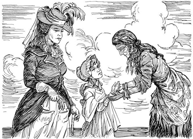 По простоте душевной малышка предложила цыганке в качестве платы монетку в шесть пенсов с дыркой посередине. Но та отвергла предложение: монета принесет девочке удачу, а половинка ее принесет еще больше!