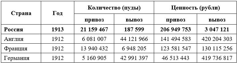 Еще более наглядно свидетельствуют о промышленном развитии царской России, в сравнении с мировым уровнем производства приведенные ниже данные в следующей таблице. Они убедительно показывают, что продукцию, по терминологии А.Г.Крестовникова, механической промышленности Российская империя в большом количестве ввозила из других стран, а сама, практически туда аналогичных продуктов производства не вывозила. Можно ли такую ее называть промышленно развитой державой, обладающей мировым уровнем производства того времени, занимающей ведущие позиции среди наиболее преуспевших в технологическом плане стран мира? Ответ очевиден.