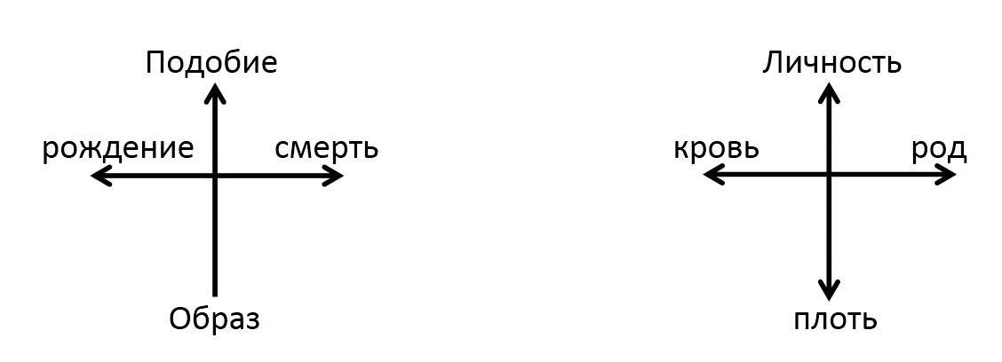 В первую очередь таким перекрестком внутреннего мира человека является Образ Божий, находящийся в Душе и в борьбе с плотью и Личностью должен приобрести Подобие Божие путем многократных перерождений Души, как многократных ее распятий.