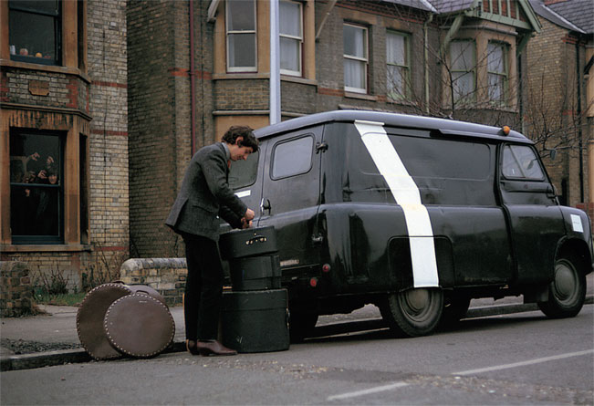 Гружу свою барабанную установку в «бедфорд» нашей группы Tea Set перед домом матушки Роджера на Рок-роуд в Кембридже. Как водится, товарищи по группе совершенно не уважают барабанщика.