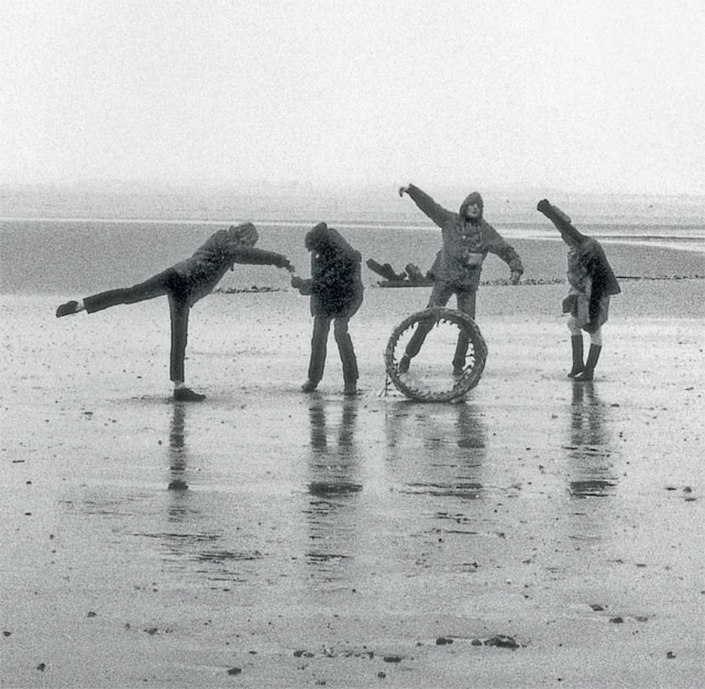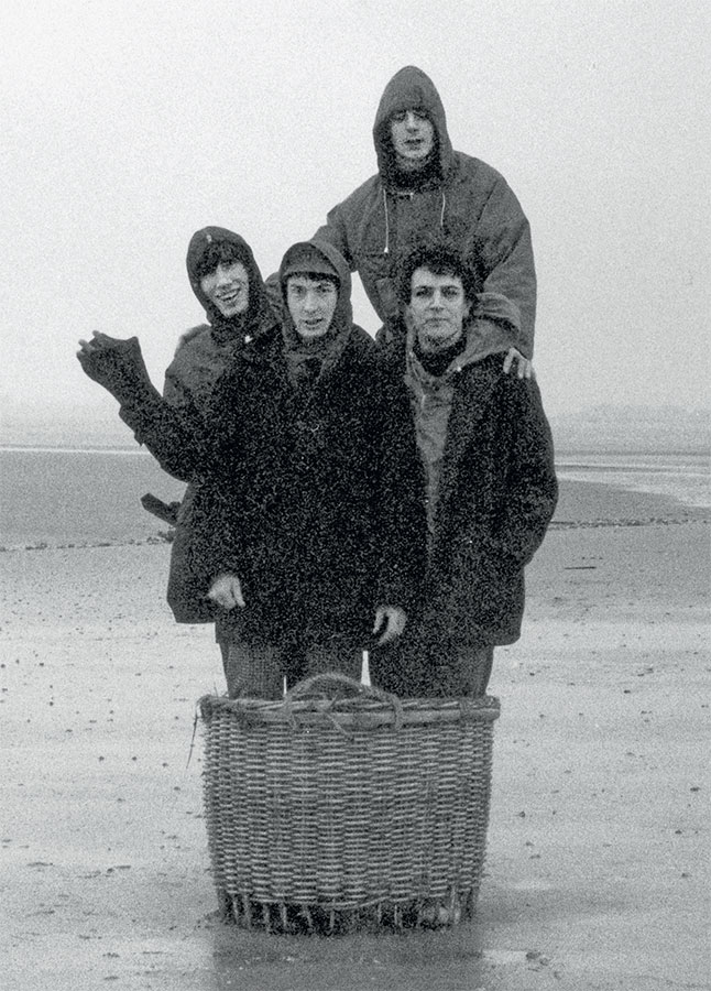 Зимний день на пляже Уиттеринг, где мы позднее сняли промофильм для сингла «Arnold Layne». Роджер, я и Сид, на заднем плане Рик.