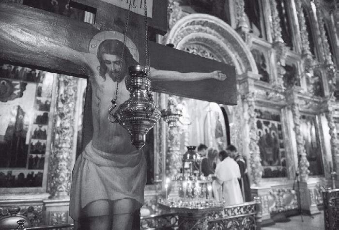 Архимандрит Кирилл на богослужении.