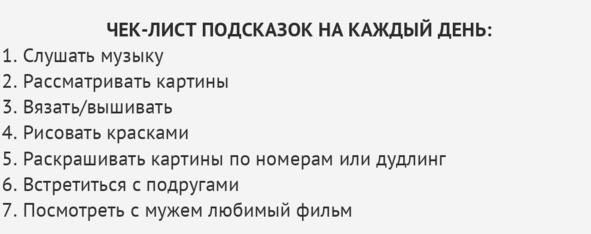 • 1 кнопка: вспомните всё лучшее, что радовало сегодня, представляя в деталях в течении нескольких минут