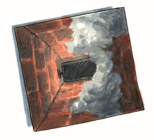 Лукас смекнул: «Где-то должна быть заслонка, которой дымоход можно открывать и перекрывать. Иначе дождь тут всё бы залил, а зимой выстудил холодный ветер с моря».