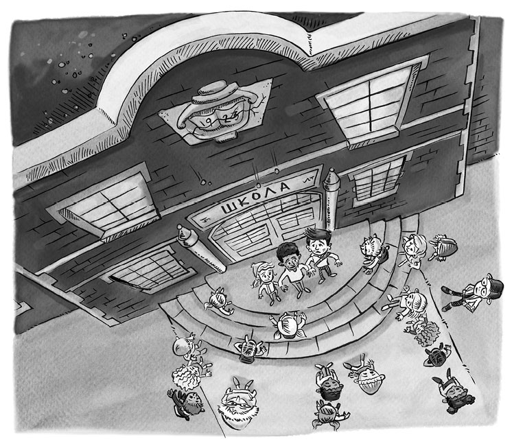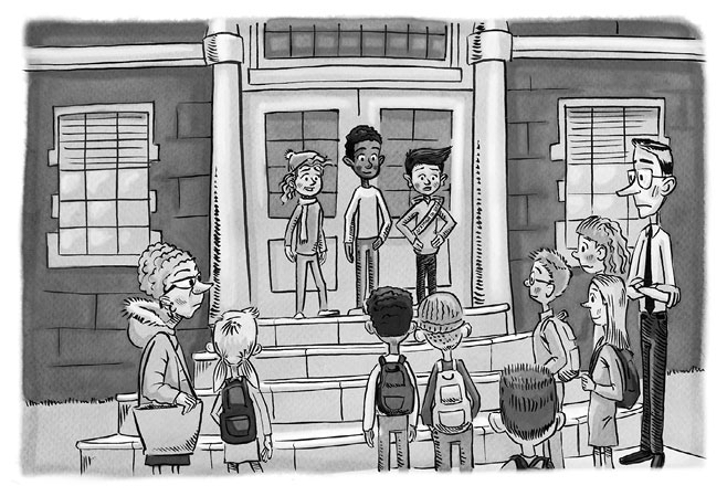 Ученики выстроились полукругом перед крыльцом. Они дожидались, пока двери откроются и начнутся занятия.