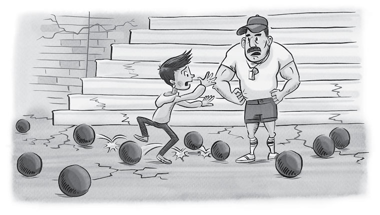 – Сэм Склепс, – мистер Киркпатрик уткнул ручищи в бока: – Тебе нужно поработать над боевым духом. Никто не увильнёт от дня «вышибал»!