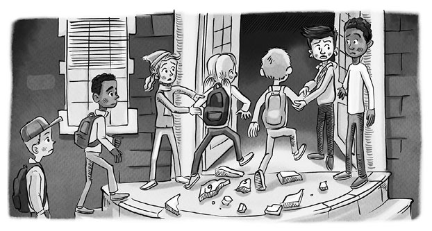 Дело происходило утром перед зданием начальной школы Жуткинса. Сэм и его лучшие друзья стояли на ступеньках крыльца – они дежурили. Ребята следили за тем, чтобы все стояли ровно.