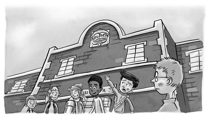 Морщинистая рука потянулась к Сэму, помогая ему подняться. Подняв глаза, мальчик увидел мистера Некоби – старика, который присматривал за зданием. Мистер Некоби выбрал Сэма дежурным. Он рассказал ему правду о школе Жуткинса. Этой тайной сторож поделился только с Сэмом, Антонио и Люси.