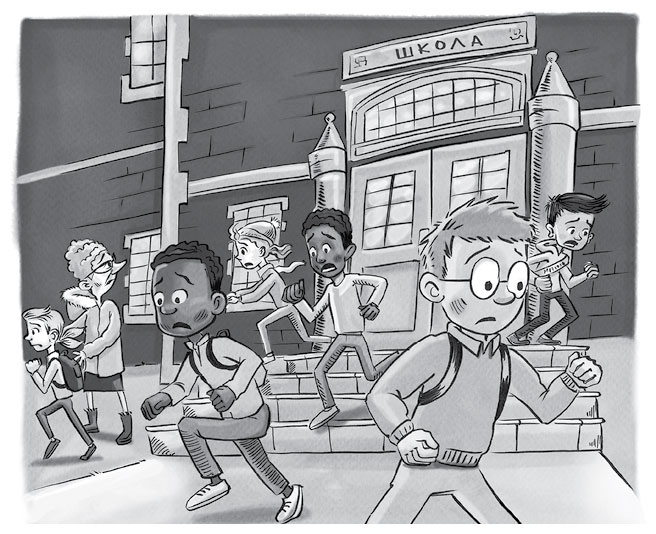 Ученики и учителя разбежались. Никто не понимал, что происходит, но все слышали школьных дежурных, а те сказали ПОШЕВЕЛИВАТЬСЯ!
