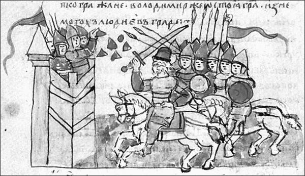 Осада Херсонеса. Миниатюра из Радзивилловской летописи
