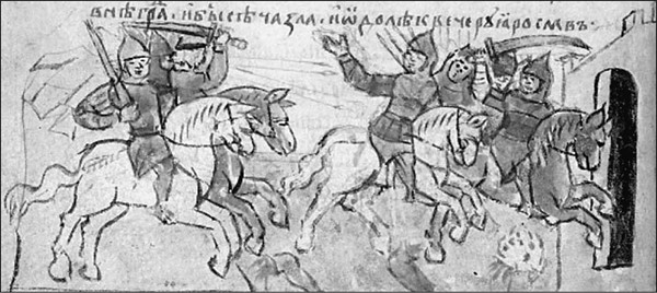 Битва под Киевом. Миниатюра из Радзивилловской летописи