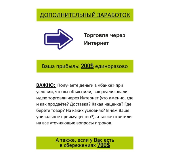 Рис. 3 Карта «Возможность» из настольной игры-симулятора «КЭШ- менеджер»