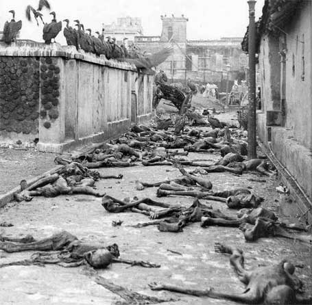 В период Второй мировой войны британское правительство, опасаясь вторжения японской армии в Бенгалию, приказало вывезти из нее запасы зерна, а также конфисковать и уничтожить лодки, лишив население возможности заниматься рыбной ловлей. Результатом этих мер явилось то, что в 1943 г. Индию, тогда часть Британской империи, поразил тяжелейший голод. В Бенгалии погибло по оценкам сотрудников Калькуттского университета не менее 3,5 млн. человек.