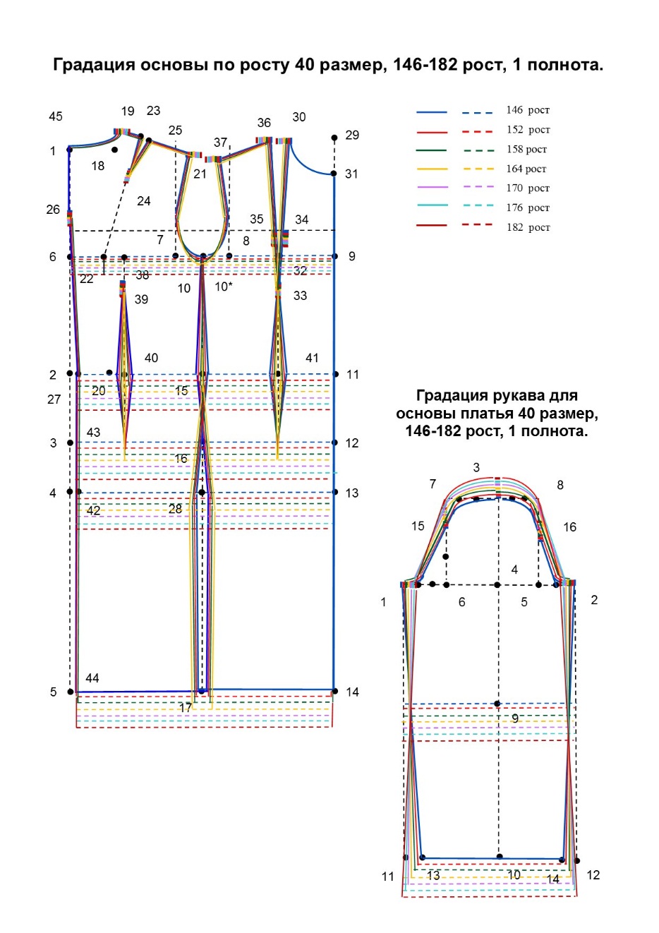 Построение основы платья 40 размер, 146 рост, 2 полнота.