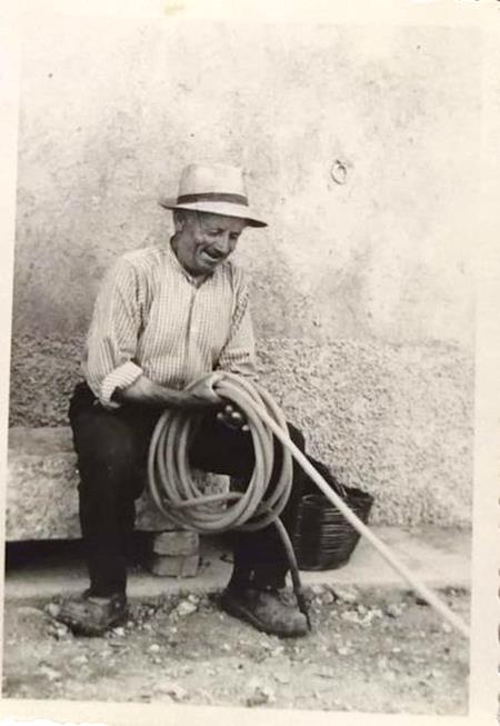 Anni ’50, Giuseppe e la mucca. Molte famiglie possedevano una o due mucche per il latte, il vitello e il lavoro nei campi