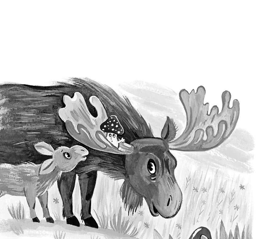 Когда лоси покинули опушку, грибы ещё долго не могли прийти в себя. А когда успокоились, договорились больше никогда не смеяться над мухоморами.