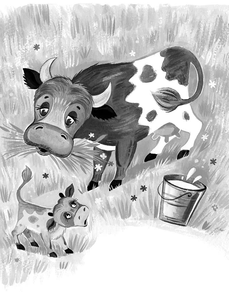 – Не надо жевать, – засмеялась мама. – Мы, коровы, сначала глотаем пищу, а только потом её жуём.