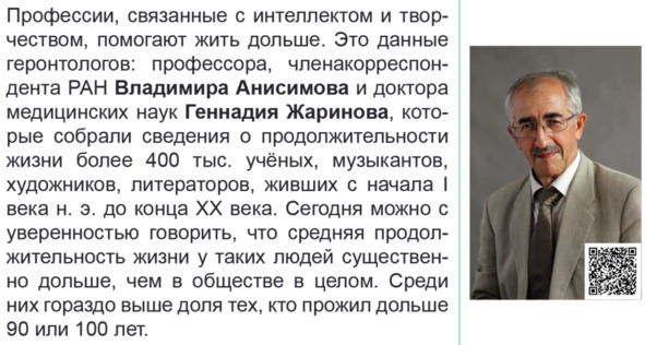 – Человеку необходимо заниматься общественно полезной деятельностью, которая способствует его здоровью и долголетию.