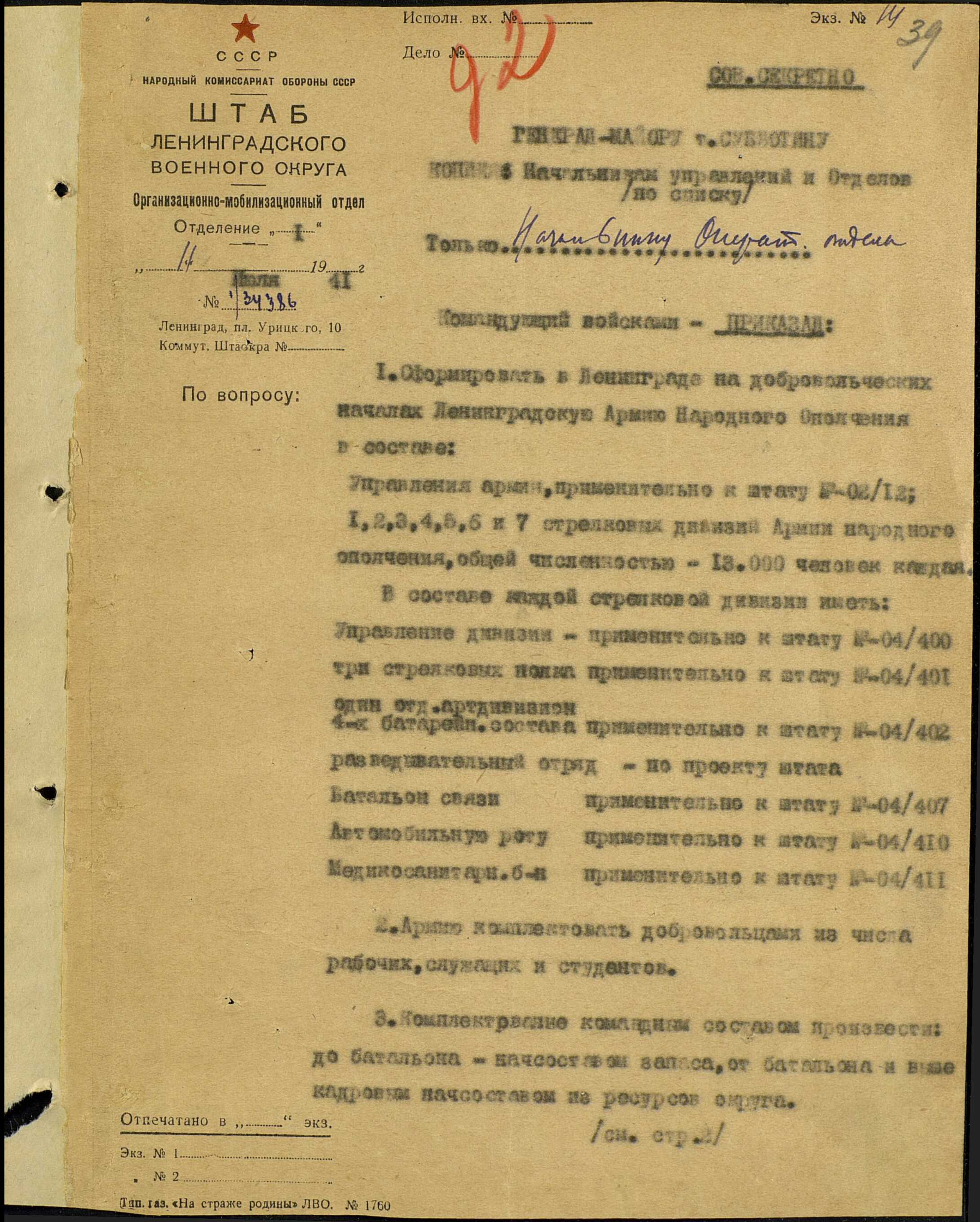 Третья Ленинградская дивизия народного ополчения была создана как часть армии народного ополчения Ленинграда по указанию Военного Совета фронта и городского комитета партии Военным Советом армии народного ополчения от 4 июля 1941 г.