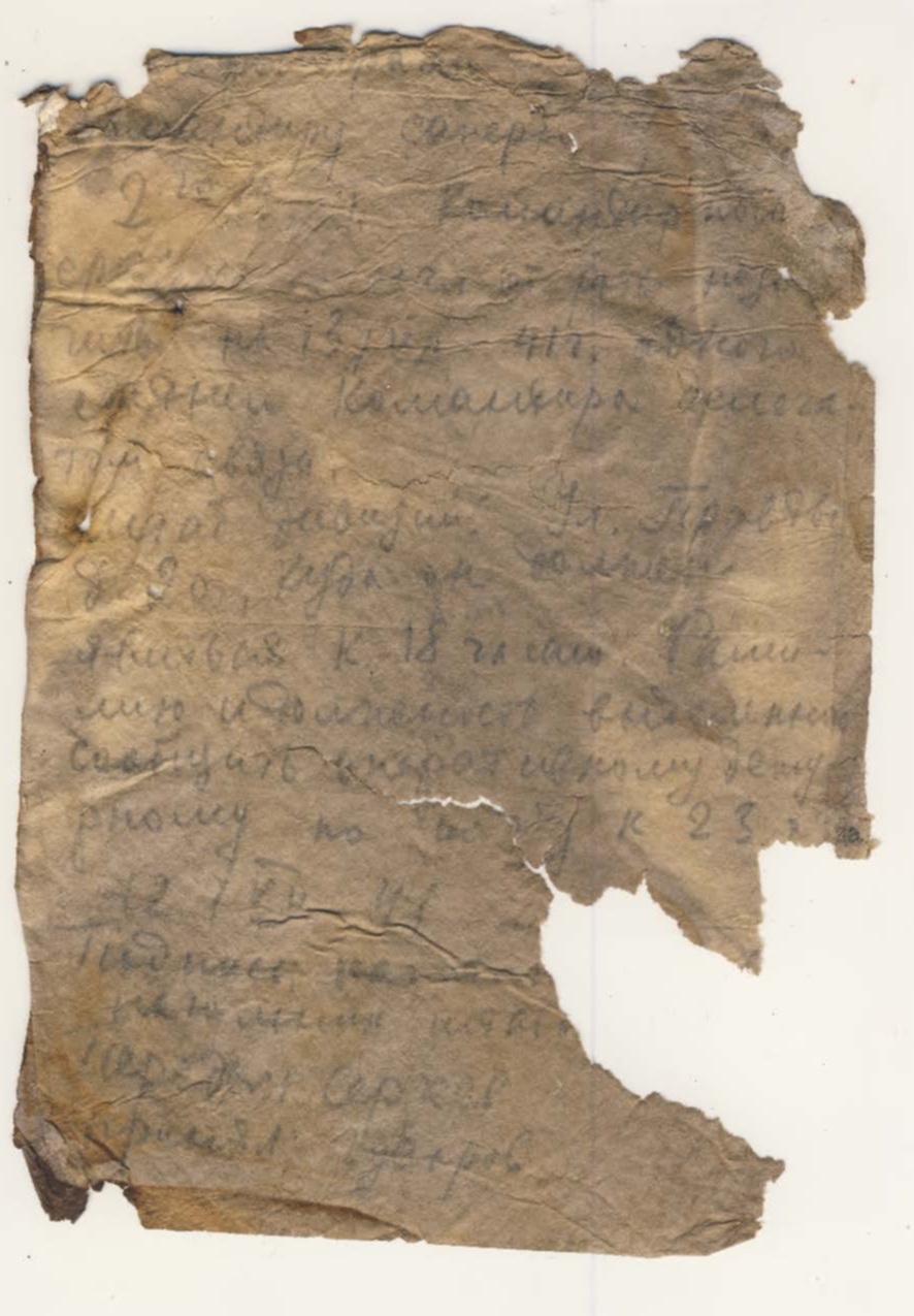 К декабрю 2020 года мною было прочитано и восстановлено содержание более 230 листов документов, в состав которых входили приказы и распоряжения командира 2 СП, карты, строевые записки, накладные, памятки, донесения, акты, резолюции, списки раненных и убитых, боевой листок, списки бойцов саперной роты 2 СП и иные документы за период с июля по август 1941г.