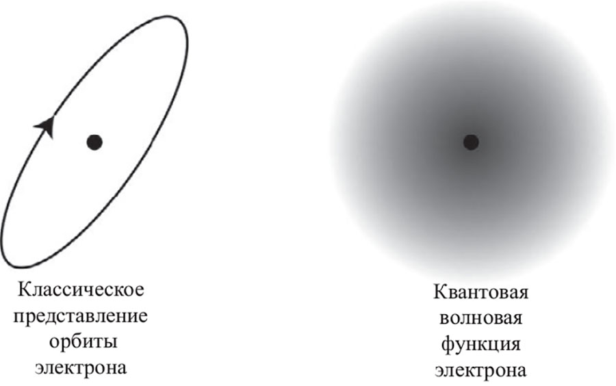Следовательно, классическое представление о состоянии частицы, «ее координате и скорости» в квантовой механике заменяется чем-то совершенно не вписывающимся в наш обыденный опыт: облаком вероятностей. Для электрона в атоме это облако более плотное ближе к центру и рассеивается по краям. В максимально плотной области вероятность встретить электрон является наивысшей: там, где облако становится разреженным практически до полного исчезновения, вероятность встретить электрон также исчезающе мала.