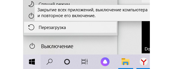 Ещё иногда вам может понадобиться перезагрузить компьютер (например после установки нового оборудования, обновления драйвера или системы). Делается там же где и выключение, только по соседству нужно выбрать перезагрузка (рисунок 5).