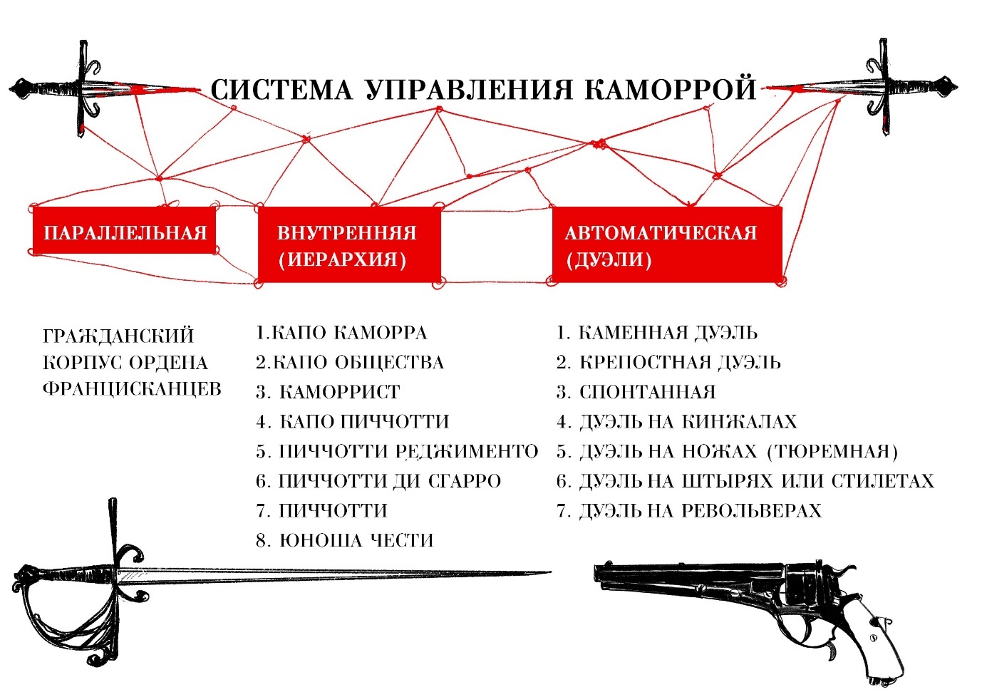 Во-первых, рассмотренные дуэли имели в Каморре многофункциональное значение – это и программа подготовки, и система контроля, и система взаимодействия между членами организации, и система разрешения конфликтов, и система естественного отбора, то есть выявления тех людей, которые могут подвести в самый неподходящий момент.