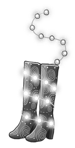 Кроссовки без разрешения поменялись шнурками. Пара белоснежных кед своевольно стащила из коробки и налепила на себя красные сердечки. Туристические ботинки, которые недавно изготовил дядя Клеменс, приклеились подошвами к потолку. Как они умудрились туда попасть?