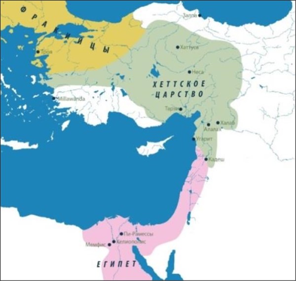 Со втор. полов. XV в. и до конца XIII в. хеттские цари вели непрерывные войны. Они захватили государство Митанни в Северной Месопотамии, вступили в борьбу с Египтом за обладание Сирией. Их союзниками явились степные племена хапиру, которые в это время повели наступление на плодотворные земли Сирии и Палестины.