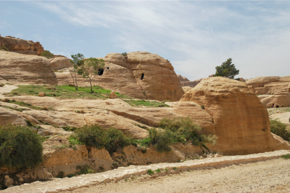 Баб эс-Сик, вырубленные в скалах хижины