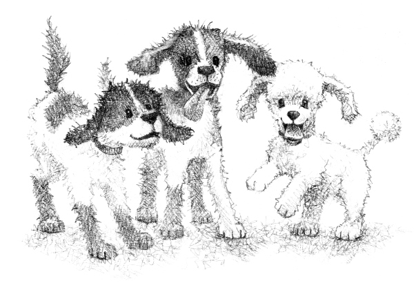 Грейс нахмурилась. На траве лежало несколько игрушек, но они были слишком большими и твёрдыми для маленького щенка.