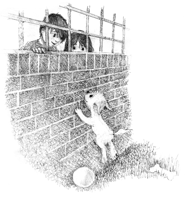 Джек пошёл на звук лая к угловому дому. Сад окружал невысокий забор. Мальчик привстал на цыпочках.