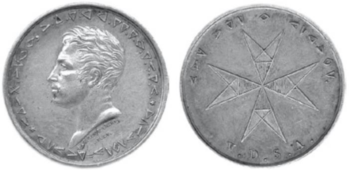 На реверсе – тамплиерский крест с аббревиатурой V. D. S. А